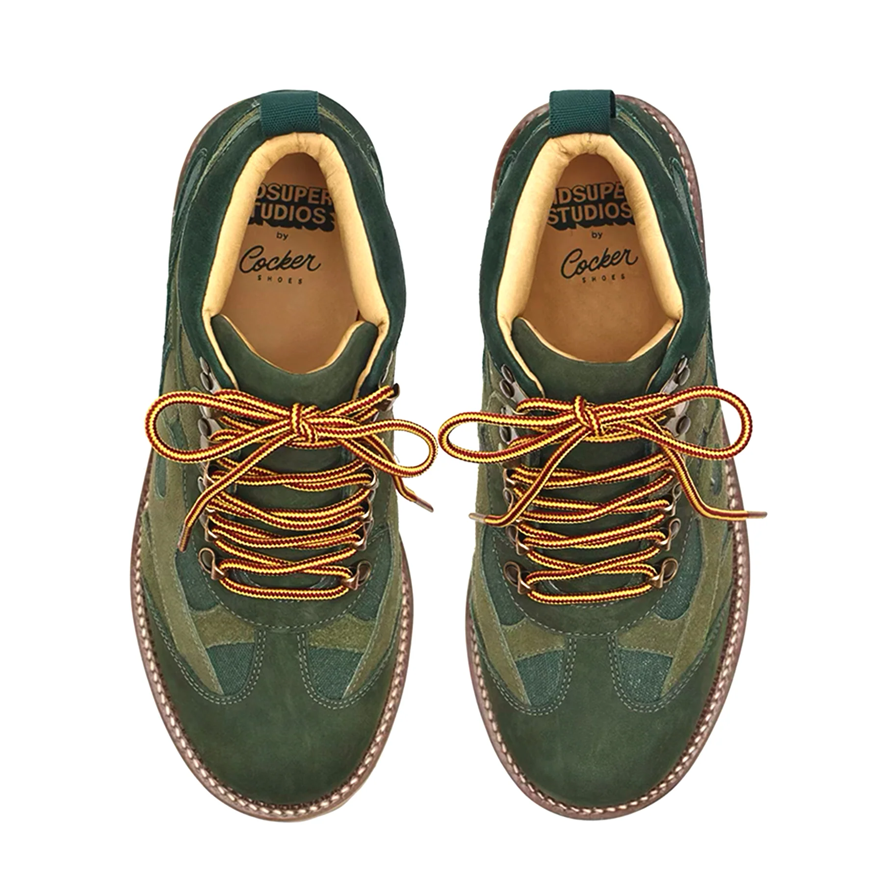 Step into these green boots with a twist—leather and suede swirls to liven up the classic silhouette.
